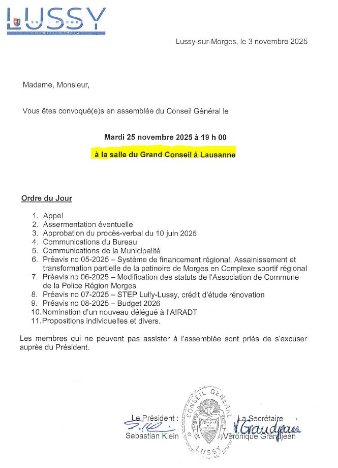 Ordre du jour du prochain Conseil Général